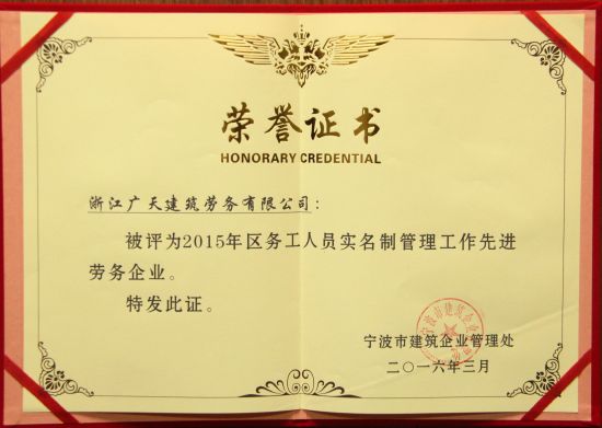 2015年度務(wù)工人員實(shí)名制管理工作先進(jìn)勞務(wù)企業(yè)