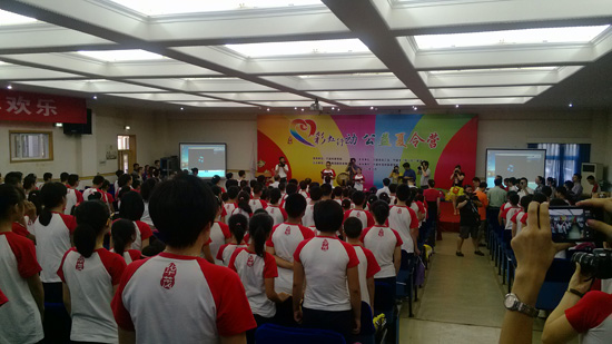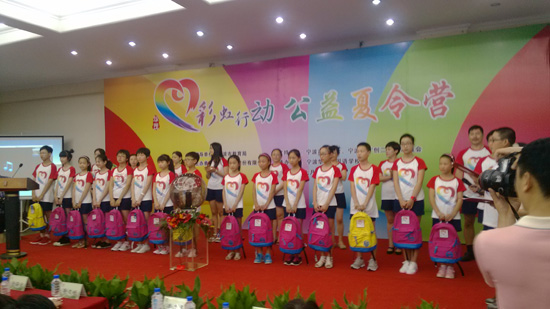 2013年7月7日下午,由公司組織的從各個項目部挑選的13名優秀外來務工人員的孩子,在華茂學院大禮堂參加了華茂集團舉辦的 “華茂•彩虹行動”夏令營開營典禮活動,公司黨政工團主要領導親自到會參加了這次活動開營典禮。并向全體“小候鳥”們贈送了愛心水壸。