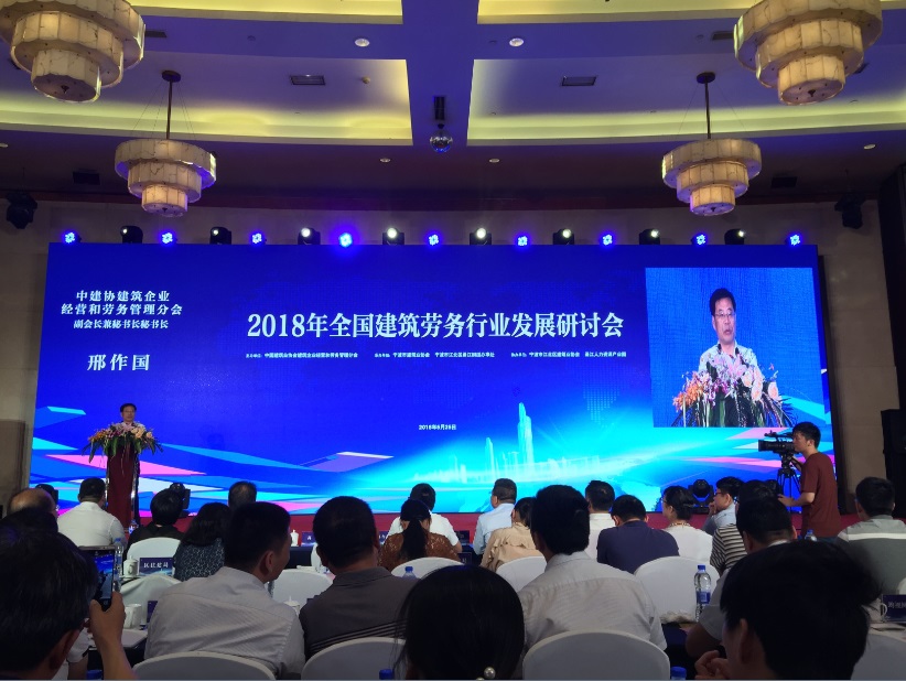 由中國建筑業協會建筑企業經營與勞務管理分會主辦,寧波市建筑業協會、寧波市江北區甬江街道辦事處承辦,寧波市江北區建筑業協會和甬江人力資源產業園協辦的2018年全國建筑勞務行業發展研討會,5月25日在寧波市江北區遠洲大酒店遠洲廳召開。本次會議聚焦推進建筑勞務用工制度改革、培育建筑產業工人隊伍、探索建筑勞務行業的可持續性發展之路。住建部建筑市場監管司施工處米凱主任科員、中建協建筑企業經營與勞務管理分會邢作國副會長兼秘書長、寧波市江北區人民政府尤武衛副區長、寧波市住建委審批處高波處長、寧波市建筑業協會徐文衛會長應邀出席;寧波市江北區有關職能部門負責人、中建協勞務分會理事單位、寧波本地建筑勞務企業、總承包企業代表共150余人參會。