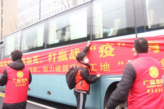 為了做好復工復產工作,廣宜集團在前期做了大量的摸底和統計工作。首先要求勞務專管員從每個項目工地統計需要返甬的人員信息,根據務工人員較為集中且出行較困難地區進行主要安排,然后勞務專管員經過多次聯系、核對確認返崗人員名單、出行時間以及集中出發地點。最后公司組織跟車負責人隊伍,隨車全程協助做好車輛及司乘人員防疫保障,防疫消毒,測溫記錄等各項措施,乘車人員和駕駛員均按照要求佩戴口罩,運輸過程中人員用餐實行分餐制,全力確保安全。