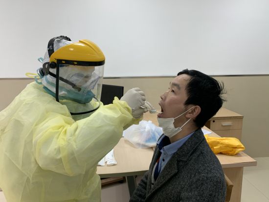 工人到達(dá)后,工作人員認(rèn)真為返甬工人做好體溫檢測(cè),甬行碼查看,“一人一表”填寫等一系列手續(xù)。為減少隔離時(shí)間成本、保障工人身體安全及加速項(xiàng)目復(fù)工復(fù)產(chǎn),企業(yè)為工人報(bào)名做核酸檢測(cè)。