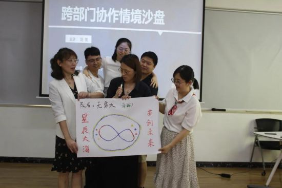 項目第一門課程為《跨部門協作》情景水盤,該課程為學員 營造一個多家企業相互競爭的商業模式,所有學員分為多組,各組的成員選取好船長、大副、水手角色,建立捕撈團隊,成為整個商業模式中的一員,根據要求來經營自己的團隊,在規定的時間里使自己的團隊獲得最大化的利潤。