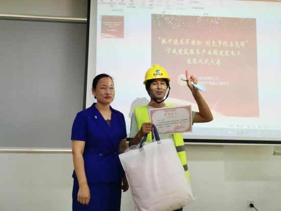 通過一系列地考核,最后張禮駿同志獲得一等獎,劉彪和徐永紅同志獲得二等獎,王輝、張桃、嚴虹、林惠豐、戴東昕等同志獲得三等獎,其余18名學員獲得優勝獎。本次比武非常榮幸的邀請到了甬江街道總工會主席鄭亞萍、寧波建筑服務產業園工會聯合會主席胡優鴛和本次比賽的考評專家共同為各位選手頒獎。