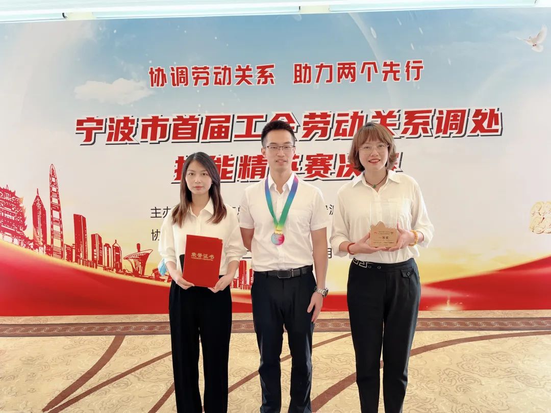 2022年9月8日下午,首屆工會勞動關系調處技能精英賽決賽在鄞州成功舉辦。廣宜集團法務李琴琴代表出戰,最終以優異的成績奪得團體一等獎!