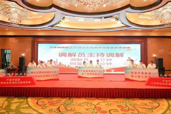本次參賽的人員都是來自各級調處工作室的專職調解員和擅長勞動爭議調處的執業律師,比賽總共分為三個環節,初賽環節,參賽隊伍根據題目設計完整的調處方案,考察參賽隊伍對于調解工作的熟悉程度以及設計調解方案的能力;半決賽環節,通過業務理論筆試、調解文書制作、案例研討分析等三種方式,考察參賽隊伍的政治素養、法律素養、材料審查、邏輯分析、文書制作等綜合能力;決賽現場設置四個勞動爭議案例重點考核參賽隊伍的糾紛調處能力、控場能力,每場比賽設置職工方、企業方和調解方三方角色參賽隊伍根據給定的案例和抽簽確定的角色立場參與調處,評委根據參賽隊員整體表現、案件信息點把握等多方面的能力水平酌情打分。最終經過比拼,李琴琴所在隊伍—寧波建筑服務產業園丁師傅調解室獲一等獎。