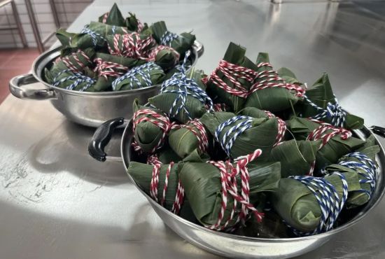 活動現場,大家互相分享包粽子的基本步驟和技巧,紛紛展現出自己的包粽子技能,小伙伴們手法嫻熟,卷起粽葉,填入糯米,包滿餡料,再合上粽葉用粽線飛快地繞住綁緊,整個過程一氣呵成,不一會兒就包出了滿滿一盤“漂亮、飽滿”的粽子。大家一邊包粽子,一邊互相交流,分享包粽子的技巧和樂趣。包粽子不僅是一項傳統手藝,更是一種文化傳承和情感的交流。通過親手包粽子,大家更加深入地了解了端午節的來歷和文化內涵,也感受到了傳統節日的獨特魅力。