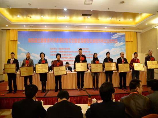 公司榮獲全國誠信AAA建筑勞務企業,總經理邵茹(左3)臺上領獎